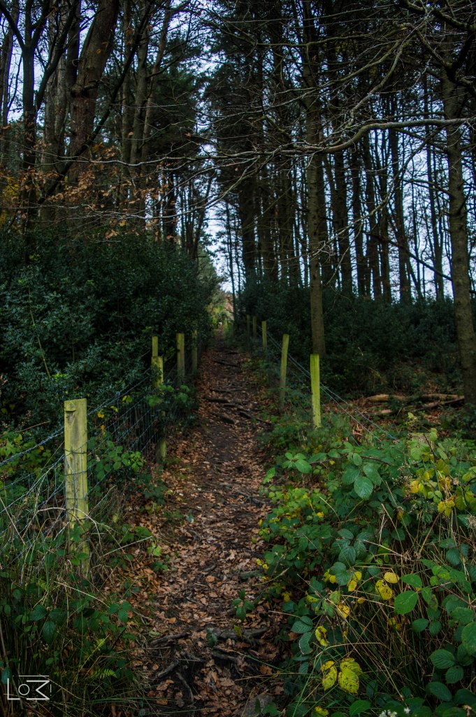 As you reach the gap in the fence, a path moves off the main path to the right. Turn right here and follow the path.