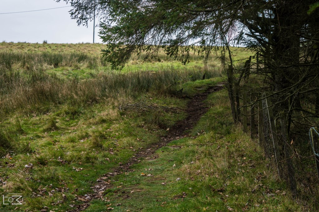 Continue up the path as it heads towards the gap in the fence at the top of the stream.