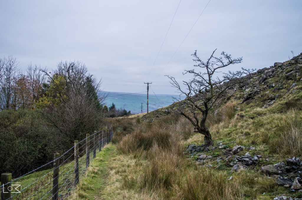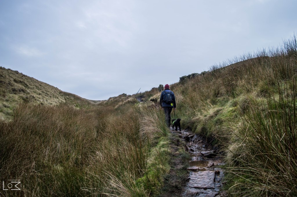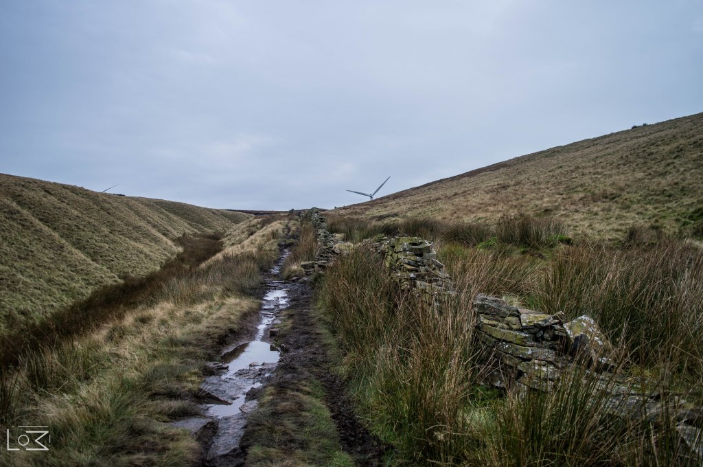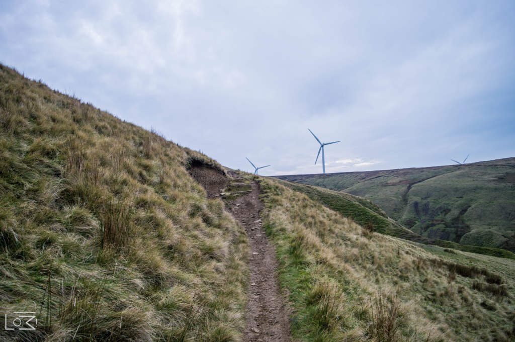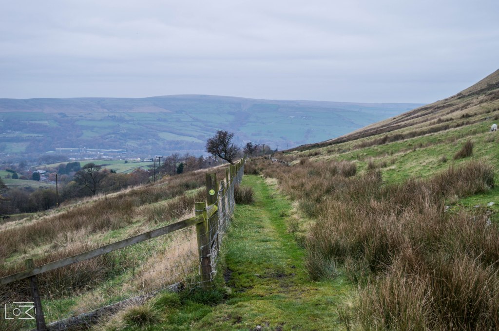 Follow the Rossendale Way as it bends around to the left and heads up the valley sides.