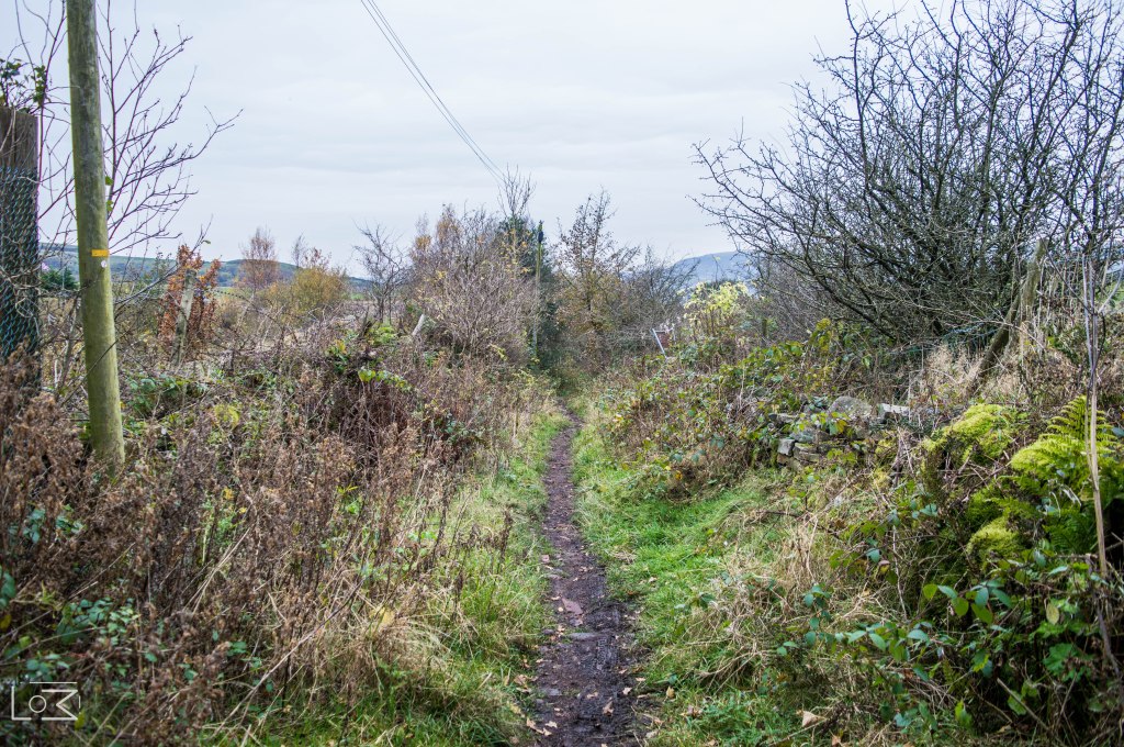 Follow the pavement past the house and you will see a footpath that appears to your left, leading away from Rochdale Road. As you can see in the photograph, this isn’t very clear at this time of year, however you can see the Rossendale Way sign pointing left on the end of the wall.
